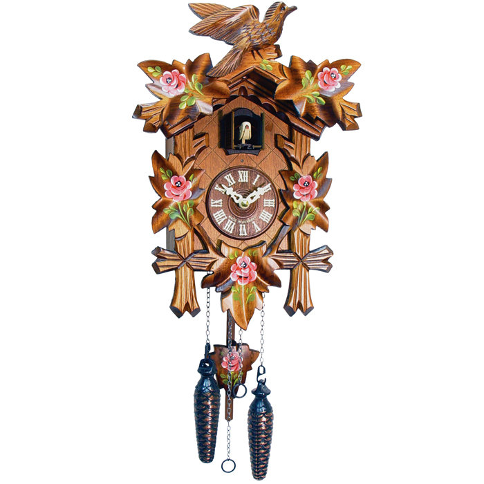 At one o'clock it calls "Cuckoo" once, at two o'clock twice, and so on. At twelve o'clock a little door on the top of the clock flies open, and out pops the cuckoo himself. He bows his head politely, and "cuckoos" twelve times. Every time he says "Cuckoo", he opens his mouth and flaps his wings. Then he hops back into his little parlor, and shuts the door behind him.