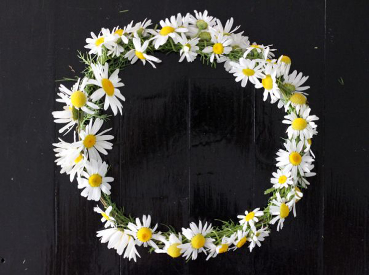 She opened the door wide, and the four little girls crowded in, holding the long daisy-wreath carefully in their hands.
