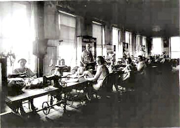 As I watched her busy fingers rectifying the mistake, I thought, How like life! Often on account of carelessness we make mistakes that it takes many days of sorrow to correct. In another room there were three machines for stretching, drying, and dressing the cloth, after it was taken from the loom. In this room were two desks at which young women were picking knots from the cloth before it was dressed. Here also the cloth was folded in great bolts, tied with pink tape, and piled up ready for transportation. Just across the street is a large building where the goods are stored.