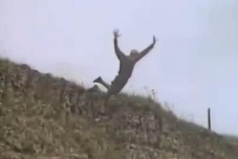 As he was nearing the bottom of the hill, Willie's foot slipped, he fell, and Peter on top of him.