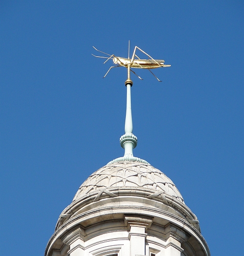 But the sparrows and the text are not the most attractive things about the Exchange, and I am sure, if you look at it, you would think as I do—that the weathercock is the most singular and curious thing about the building. It is not like any other weathercock in England, or, I should think, in the world; for there, twisting on the pinnacle of the spire, is a monstrous grasshopper; and I'll tell you how it came to be there.