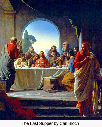 Before they had finished their meal, Jesus instituted what is known as the Lord's Supper. He took bread, 'and when he had blessed, he took it and gave it to his disciples, saying, "Take, eat, this is my body which is given for you: this do in remembrance of me." Then he took a cup of wine, and 'blessed it, and passed it to his disciples, telling them to all drink of it; "For," said he, "this is my blood of the new testament, which is shed for many for the remission of sins."