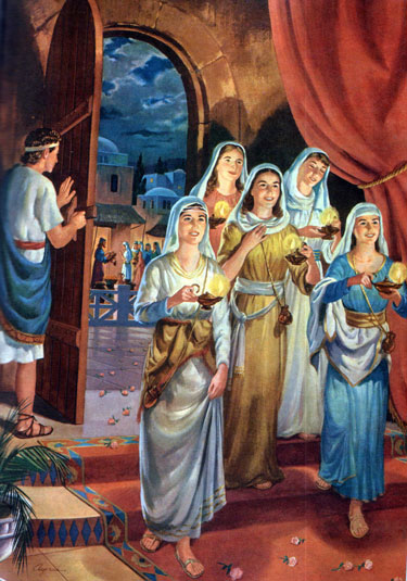 "Then shall the kingdom of heaven be likened unto ten virgins, which took their lamps, and went forth to meet the bridegroom. And five of them were wise, and five were foolish. They that were foolish took their lamps, and took no oil with them: but the wise took oil in their vessels with their lamps. While the bridegroom tarried, they all slumbered and slept.